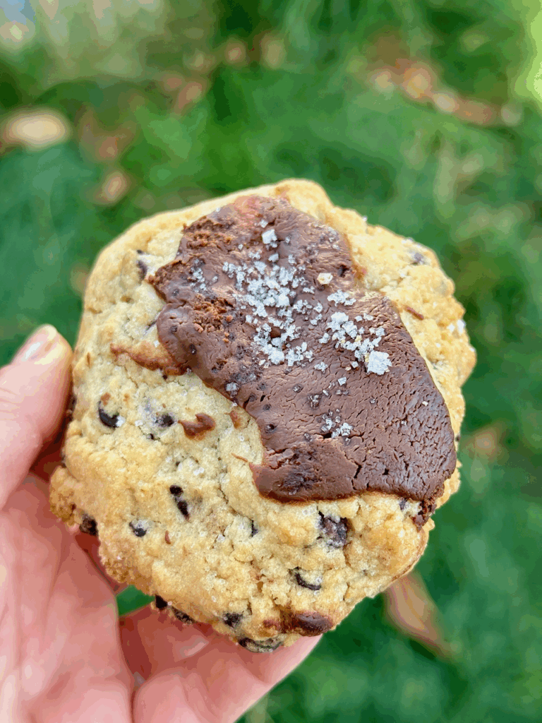 Je termine avec le TRÈS beau cookie, surmonté de chocolat et de fleur de sel et moelleux comme il faut. Un final simple et parfait.