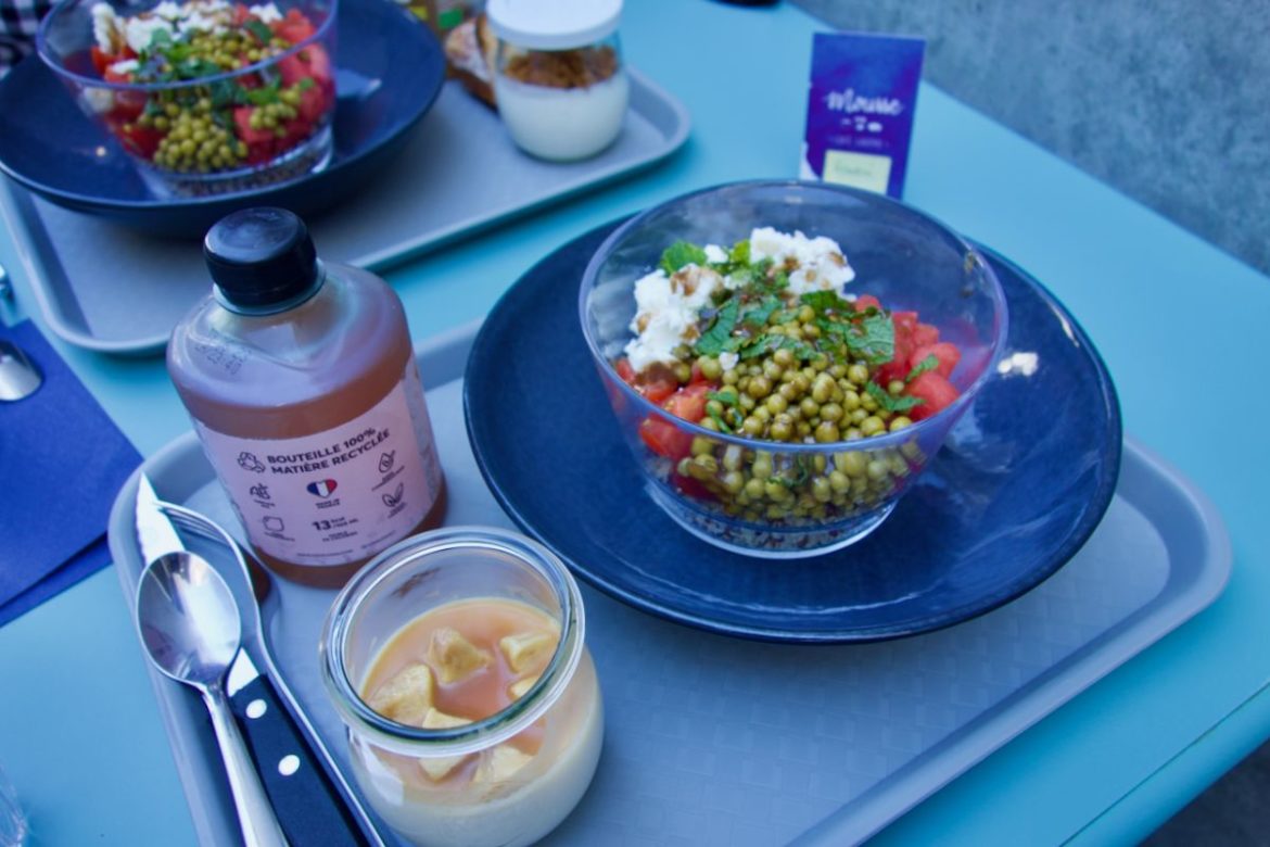 En cette chaude journée d’août, c’est donc le salad bowl au trio de quinoa, pastèque, tomates cerises, petits pois, fêta et menthe qui s’impose (8,90€).